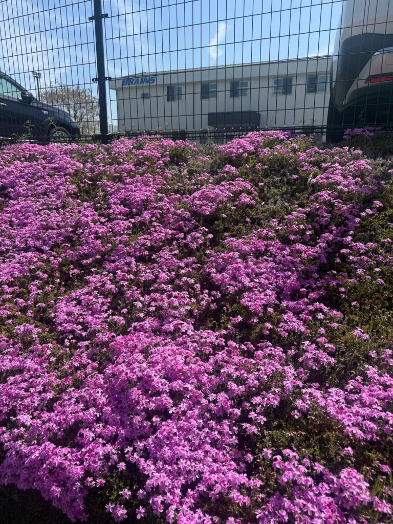 シバザクラ 投稿日 2026年4月17日 著者 admin カテゴリー 社内風景 4月中旬の山梨県は、初夏を思わせる暖かさ☀️本社の周りでは桜や桃の花が見ごろを終え、花壇に植えたシバザクラが見ごろを迎えています。鮮やかなピンク色が広がる花壇に、思わず癒されます✨